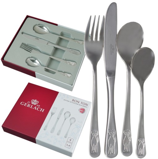 Детские столовые приборы Gerlach KM371F145 Bon Ton 4 шт |с гравировкой собаки|