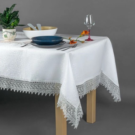 OBRUS 140x240 BIAŁY NA STÓŁ Z GIPIURĄ SZYBKOSCHNĄCY PLAMOODPORNY ELEGANCKI