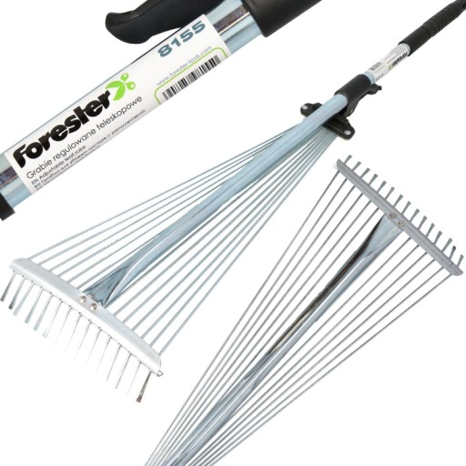 ✅ Grabie teleskopowe Forester posiadają 15 stalowych, rozsuwanych zębów, które dokładnie zgrabią spadające liście.