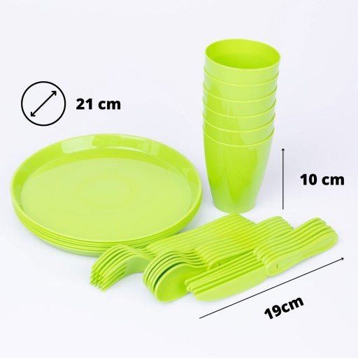 - Plastikowe zestaw piknikowy wykonany został z propylenu (PP).