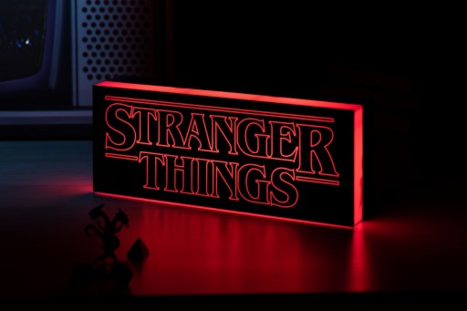 Stwórz nastrój za pomocą światła z logo Stranger Things, które zawiera Stranger Things podświetlone na czerwono oraz dwa tryby oświetlenia, w tym faza i pulsowanie światła.
