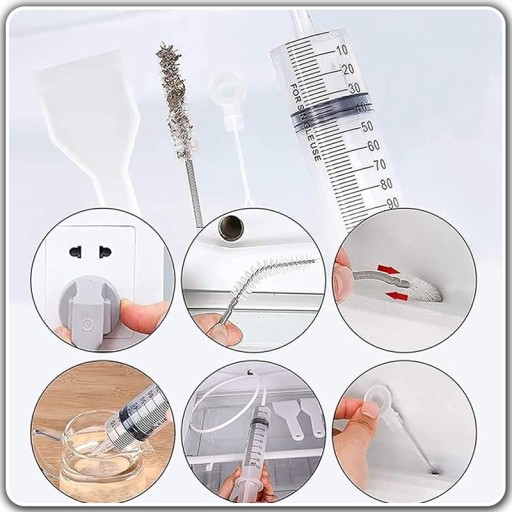 ✅ ZESTAW DO CZYSZCZENIA LODÓWKI STRZYKAWKA ODPŁYWU