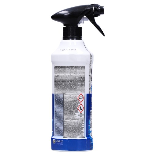 - Spryskaj powierzchnię z odległości 10-15 cm unikając przemoczenia powierzchni, pozostaw na 15-20 minut.