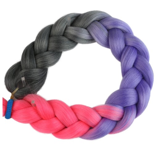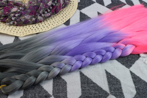 Włosy syntetyczne w przepięknym wariancie kolorystycznym - szaro-fioletowo-różowym. Wykonane z gładkiego i przyjemnego w dotyku henlonu.