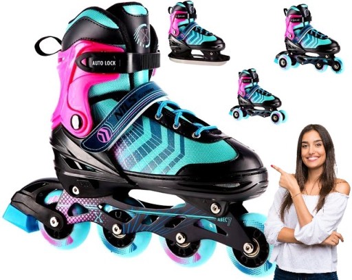 ✨Łyżworolki NH18192, to czysta radość z jazdy. Dzięki możliwości przełożenia dodatkowego kółka na tylną oś łyżworolka funkcjonalnie zmienia się na rolko wrotkę. To rozwiązanie pomoże najmłodszym rolkarzom, stawiać swoje pierwsze kroki w tym sporcie. Z kolei zamontowanie dodatkowego kółka na przednią oś sprawia, że produkt zmienia się we wrotkę. Łyżworolka wyposażona jest w specjalną aluminiową płozę oraz hamulec, co zapewnia bezpieczeństwo podczas jazdy. Z kolei kółka oraz łożyska klasy ABEC7 pozwalają na mniejsze opory toczenia, czyli szybszą jazdę.✨