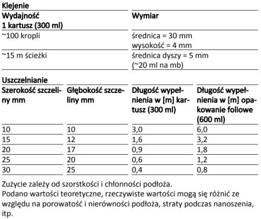 Stosujemy na czyste, suche i wolne od tłuszczu, pyłu i innych cząstek podłoże za pomocą klasycznego wyciskacza pistoletowego.