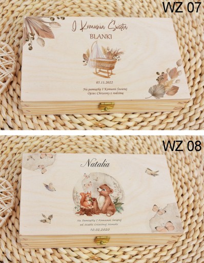 - Personalizacja oprawy techniką nadruku utwardzane metodą UV. Wykonany w ten sposób wzór jest trwały, precyzyjny i sprawia, że skrzynka staje się niezwykłą pamiątką.