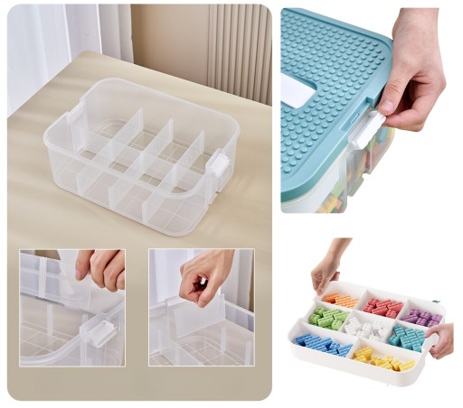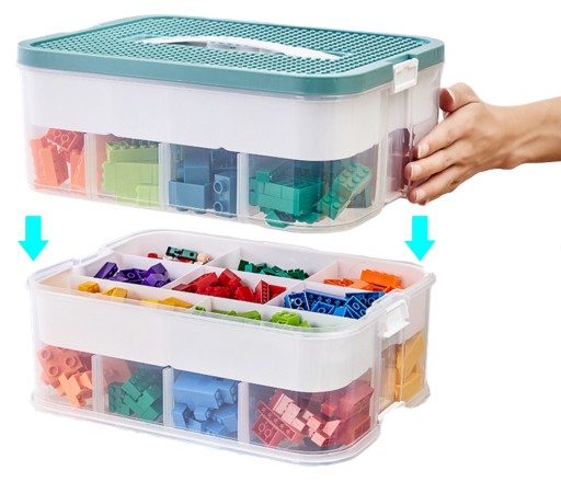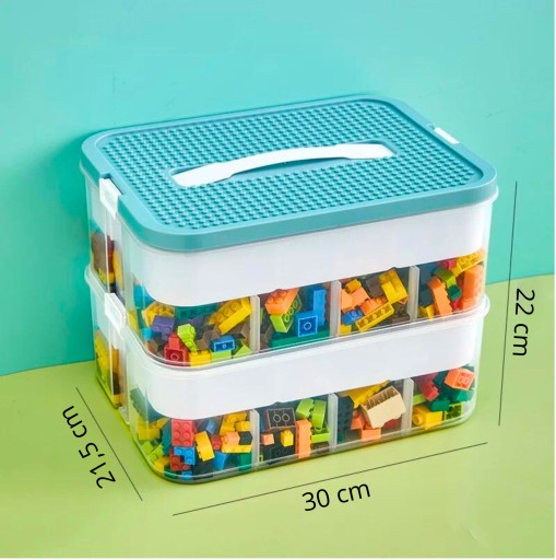 PUDEŁKO POJEMNIK NA ZABAWKI KLOCKI 2 WARSTWOWY PIĘTROWY LEGO ORGANIZER