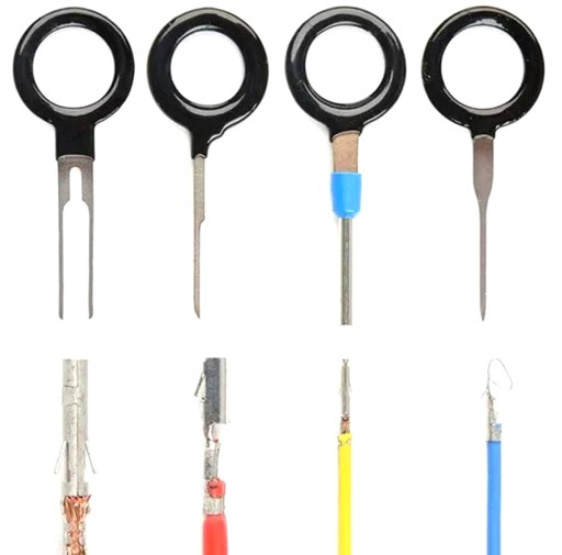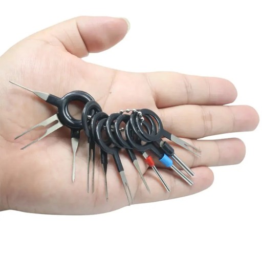 Uniwersalny zestaw 66 sztuk wyjmaków do demontażu pinów (konektorów). Komplet składa się z wielu rodzajów kluczy (pojedynczych, podwójnych, rurkowych oraz potrójnego i poczwórnego) o zróżnicowanej średnicy. Doskonale nadają się do napraw kostek elektrycznych i instalacyjnych. Obowiązkowe wyposażenie wszystkich osób zajmujących się naprawami samochodowej elektryki czy sprzętu komputerowego.