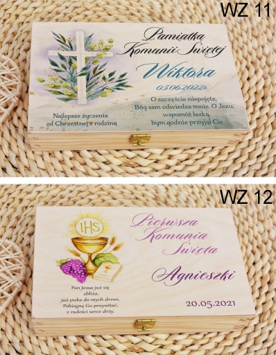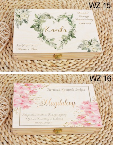 W cenie skrzyneczki jest personalizacja oprawy techniką nadruku utwardzane metodą UV. Wykonany w ten sposób wzór jest trwały, precyzyjny i sprawia, że skrzynka staje się niezwykłą pamiątką.