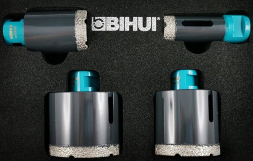 Zestaw Otwornic BIHUI 25, 40, 60, 70 w systemie M14 z walizką Zestaw Otwornic Diamentowych BIHUI MK4 to niezastąpione narzędzia do dokładnego wiercenia w twardych materiałach, takich jak porcelana, marmur czy granit.