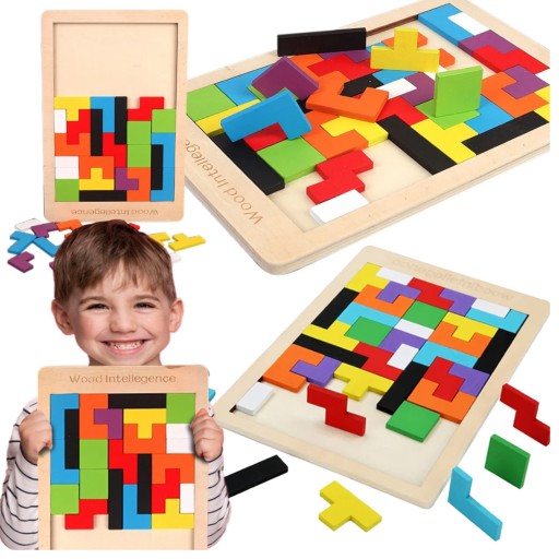 TETRIS UKŁADANKA PUZZLE DREWNIANE KLOCKI BLOKI MONTESSORI 3D GRA LOGICZNA