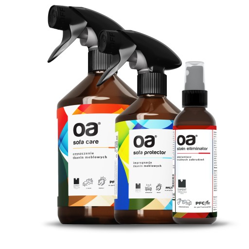 1. OA SOFA CARE to zaawansowany produkt, wykorzystując innowacje technologiczne wnika w głąb tkaniny, rozpuszcza brud, skutecznie usuwa plamy i złuszczony naskórek, który jest pożywką dla rozwoju grzybów, bakterii i roztoczy. Nie pozostawia smug i zacieków. OA SOFA CARE zawiera aktywne cząsteczki nanosrebra, które nadają tkaninie długotrwałą świeżość a zawarte w produkcie związki na bazie cynku skutecznie eliminują przykre zapachy. Produkt jest w pełni bezpieczny dla czyszczonych powierzchni oraz biodegradowalny.
