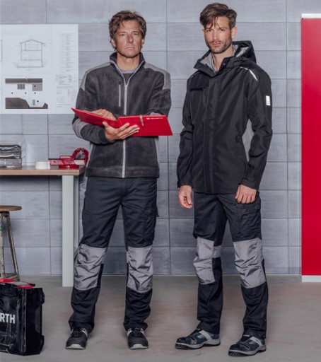 Odporne na zarysowania i niemetaliczne spodnie robocze z wieloma kieszeniami dla rzemieślników Te spodnie z kolekcji Cetus mają 8 kieszeni, które zapewniają maksymalną przestrzeń do przechowywania. Każdy z nich został starannie zaprojektowany i umieszczony tak, aby narzędzia były zawsze pod ręką: 2 przednie kieszenie bez zamka 2 tylne kieszenie zapinane na zatrzaski 1 kieszeń cargo z bocznym klinem i zapięciem na zatrzask 1 kieszeń na miarkę składaną 2 kieszenie na długopisy Te spodnie robocze dla profesjonalistów są odporne na zarysowania dzięki ukrytym guzikom i zamkom błyskawicznym i są idealne do pracy na wrażliwych powierzchniach. Podobnie wszystkie plastikowe guziki i zamki błyskawiczne, a także wszystkie inne elementy nie zawierają metalu. Przyjazne dla skóry i wygodne spodnie ISO 15797 w kolorze antracytowym Skład tych spodni roboczych w kolorze antracytowym (65% poliester i 35% bawełna) posiada certyfikat OEKO-TEX STANDARD 100 i tym samym potwierdza, że materiał tekstylny nie zawiera żadnych materiałów szkodliwych dla środowiska lub organizmu. Najlepsze: te spodnie są certyfikowane zgodnie z ISO 15797 i nadają się do profesjonalnego czyszczenia i suszenia w specjalnych pralniach. Wysokiej jakości materiał gwarantuje długowieczność i najlepszą jakość. Bardzo ważny jest tutaj również wygodny strój do pracy. Dlatego komfort noszenia jest zoptymalizowany przez pas z elastyczną wstawką dla idealnego dopasowania. Ponadto spodnie robocze są wyposażone w kieszenie kolanowe EN 14404 na nakolanniki. Ułatwiają one czynności klęczące i chronią stawy.