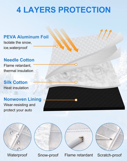 Advanced Technic - Wysoka gęstość materiału i ultradźwiękowy proces prasowania na gorąco zapewnić silną ochronę w każdej pogodzie. Nasze Windshield Cover może być używany do słońca dowód, jak również dowód śniegu. Ponadto, jest to kurz dowód, lód, mróz, liście dowód, guano dowód i mróz dowód.