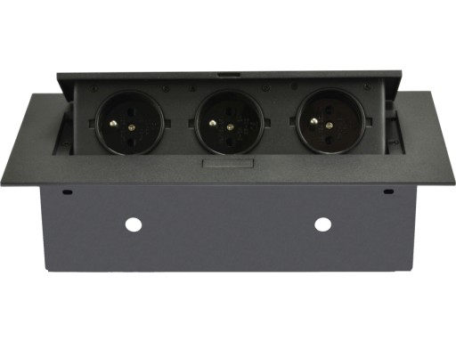 GNIAZDO MEBLOWE ORNO OR-AE-1372/B posiada wysuwany panel z 3 gniazdami sieciowymi (2P+Z) z uziemieniem i przesłonami torów prądowych.