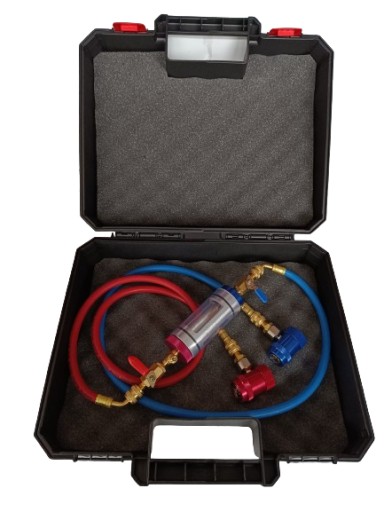 Inspektor/Tester rewizyjny jakości czynnika i oleju w układzie wraz z wężami i szybkozłączami HP i LP do r134a w plastikowej walizce