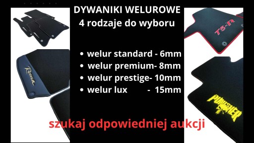 NA TEJ AUKCJI OFERUJEMY DYWANIKI WELUROWE W WERSJI STANDARD (ZESTAW ZAWIERA DWA DYWANIKI PRZEDNIE I DYWANIKI NA DRUGI RZĄD SIEDZEŃ)