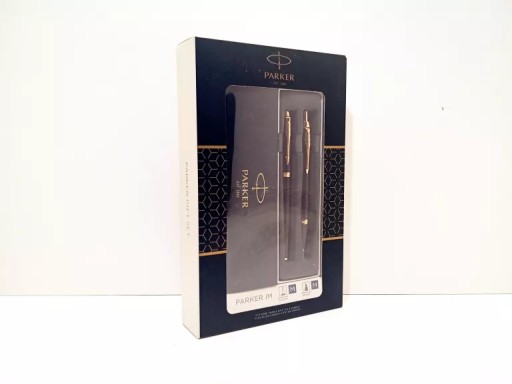Zestaw składa się z pióra wiecznego Parker IM w czarnym kolorze i ze złotymi wykończeniami oraz z długopisu tej samej serii oraz w tej samej kolorystyce. Do zestawu dołączono pudełko do przechowywania zestawu, zaś całość zapakowano w schludne opakowanie, które może być opakowaniem prezentowym.