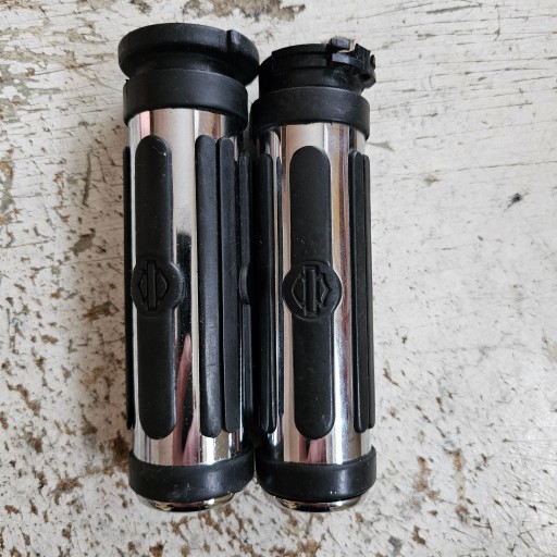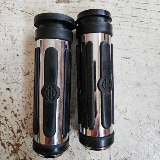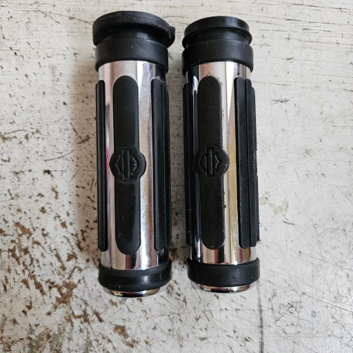 Do HD , OE manetki z logo HD, gumowo chromowe, stan to używane,bez uszkodzeń jak widać, są na gaz elektroniczny i na linki, real foto.
