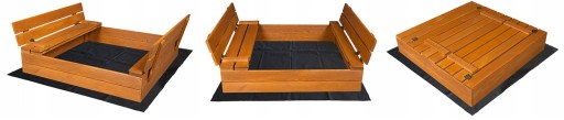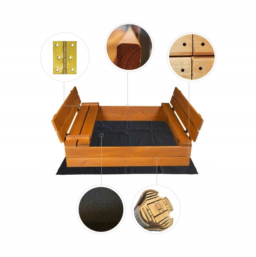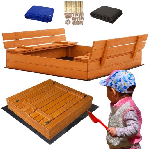 ДЕРЕВЯННАЯ ПЕСОЧНИЦА, ПРОПИТАННАЯ, 100 СМ, ЗАКРЫТАЯ С СКАМЬЯМИ + АКСЕССУАРЫ
