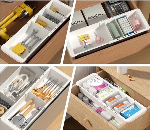 UNIWERSALNOŚĆ - regulowane organizery do szuflad mogą być wykorzystywane w różnych miejscach, takich jak kuchnie, garaże, , warsztaty, biura, itp.