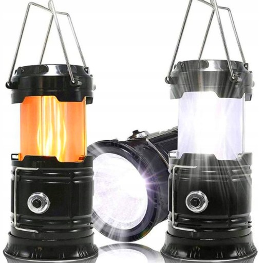 Lampa Kempingowa Składana Solarna Latarka Efekt Płomień i Biały Zimny