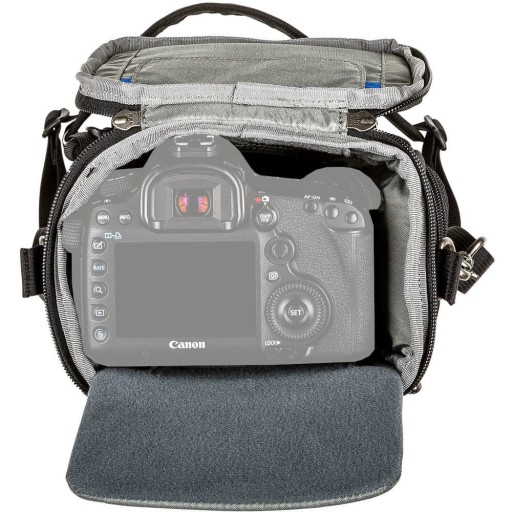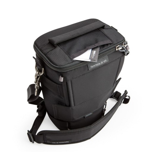 Digital Holster 20 to średnia torba fotograficzna i jej zadaniem jest bezpieczne transportowanie lustrzanki z obiektywem 24-70 mm lub nawet 70-200 mm. Wykonana z najwyższą starannością z najlepszych materiałów – nylonu 600D z powłoką hydrofobową, zamków YKK® RC, metalowych sprzączek i innych.