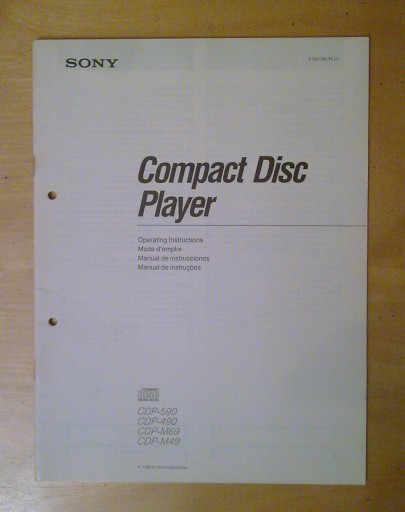 SONY CDP-590: CDP-490: CDP-M69: CDP-M49 Проигрыватель компакт-дисков - 1990 г.