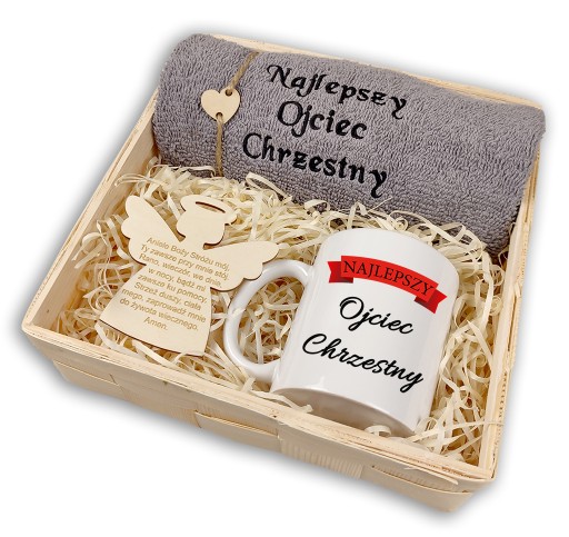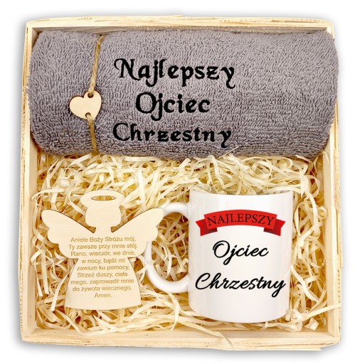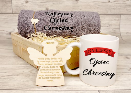 Ręcznik z haftem "Najlepszy Ojciec Chrzestny", gramatura: 500g, kolor: Popielaty, wymiary: 50x100 cm, skład: Bawełna 100%, Certyfikat: OEKO-TEX