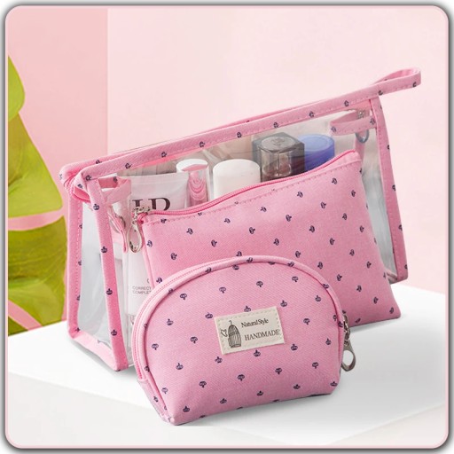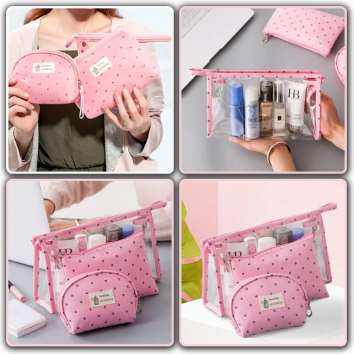 ⭐ Zestaw składa się z trzech kosmetyczek - jedna przezroczysta, dwie materiałowe