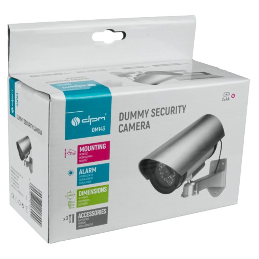 Atrapa kamery monitorującej tubowej. Dioda LED. Zasilanie: 2 x AA (brak w zestawie). Montaż: ścienny. Opakowanie: karton