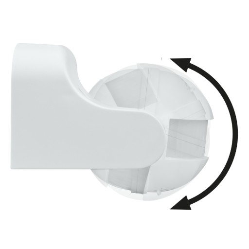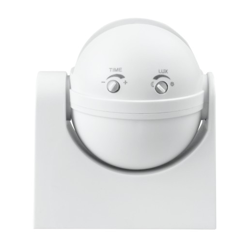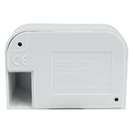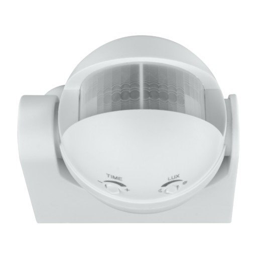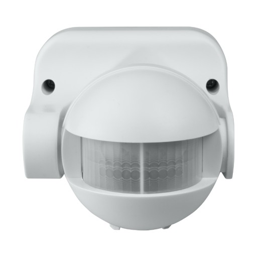 Czujnik ruchu PIR. Regulacja czasu świecenia: 5 s - 5 min. Regulacja czułości: 5-2000 lux. Kąt detekcji: 180o. Zasięg detekcji: 12 m. Napięcie wejściowe: AC 230 V. Max. obciążenie: 1200 W. Montaż ścienny lub sufitowy. Stopień ochrony: IP44. Kolor: biały. Opakowanie: karton
