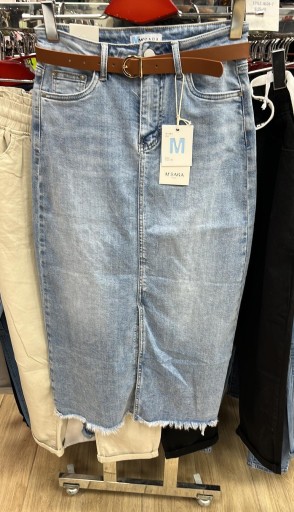 ДЛИННАЯ ДЖИНСОВАЯ ЮБКА В ПОЛОСКУ, ГОЛУБАЯ, РАЗМЕРЫ