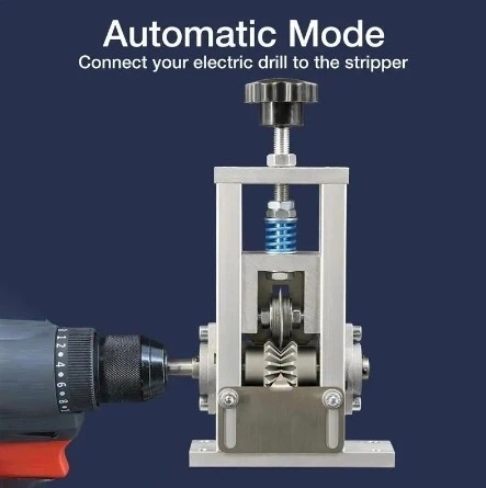 Maszynę można podłączyć do wiertarki, aby przewody mogły automatycznie odizolować izolację.
