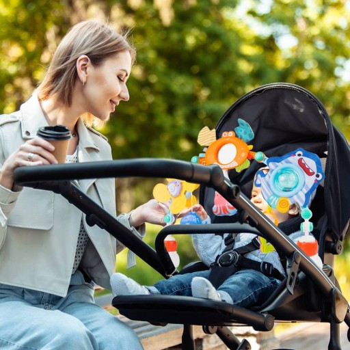 Wiek: 0m+ Zabawka przykuwa uwagę i utrzymuje aktywność oraz ciekawość dziecka podczas przebywania w wózku czy foteliku.