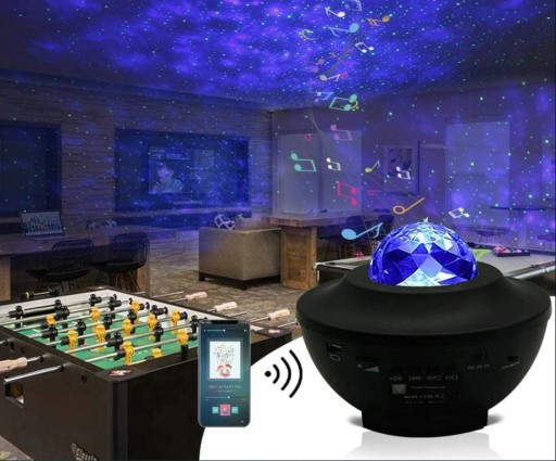 - EFEKTY ŚWIETLNE I DŹWIĘKOWE - projektor posiada wiele efektownych fal świetlnych, które wyświetlając się na ścianach i suficie tworzą realistyczne rozgwieżdżone nocne niebo, zapewniając relaksującą i wygodną atmosferę oraz sprawiając, że masz ochotę spacerować wśród gwiazd. Dodatkową atrakcją jest możliwość odtwarzania muzyki poprzez Bluetooth lub z Pen Drive.