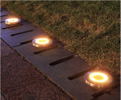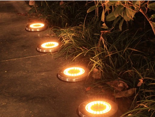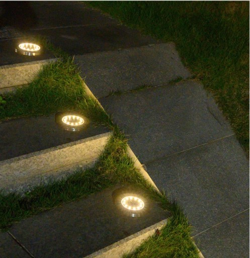 Lampa Solarna Ogrodowa Najazdowa Gruntowa Stal Ciepła Biel 16 LED 4 SZTUKI