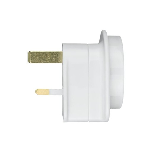 Adapter podróżny - przejściówka z wtykiem typu G. Umożliwia podłączenie urządzeń elektrycznych w krajach korzystających z brytyjskiego systemu gniazd sieciowych. Gniazdo uniwersalne z zabezpieczeniem przed dziećmi.