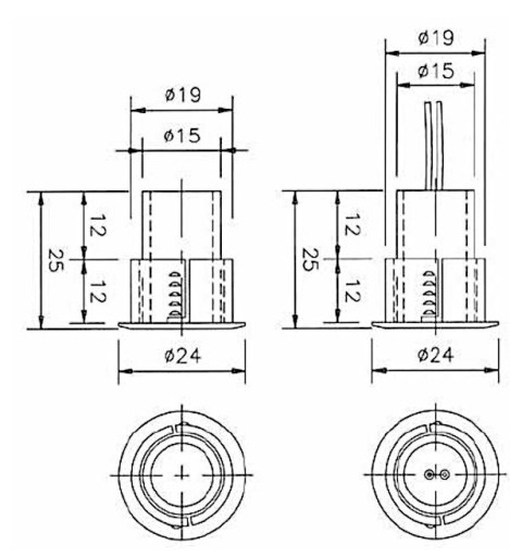 - Kołnierz pozwala na łatwy i estetyczny montaż. Wywiercony otwór nie musi być idealny aby poprawnie i estetycznie zamontować kontaktron.