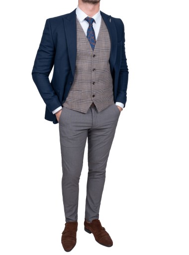 Коричневый элегантный мужской жилет в синюю клетку + аксессуары - 48
