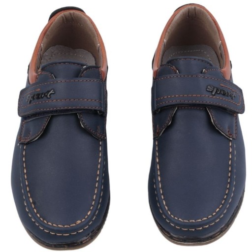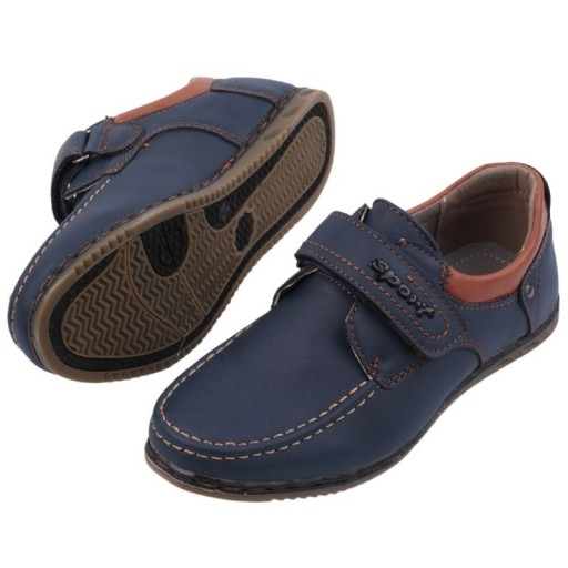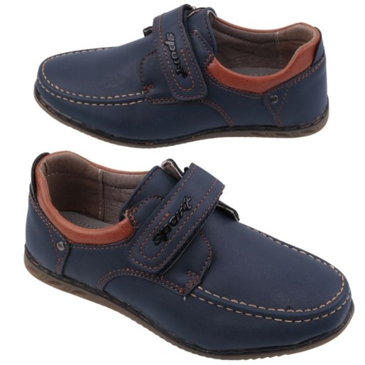 GRANATOWE MOKASYNY CHŁOPIĘCE NA RZEPY PÓŁBUTY DZIECIĘCE ELEGANCKIE WYGODNE