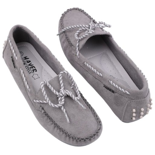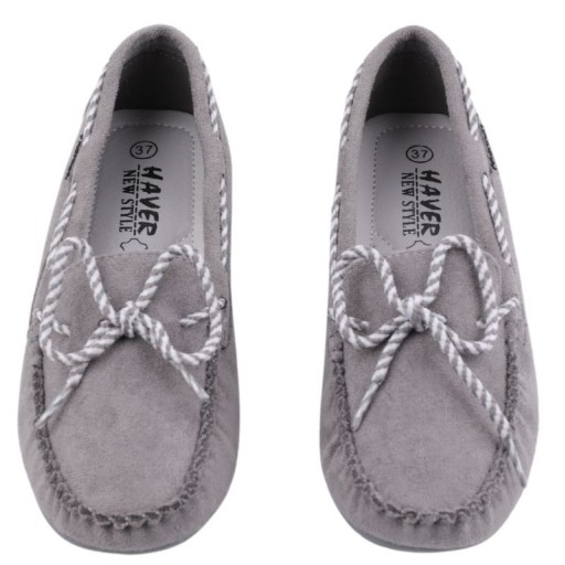 SZARE MOKASYNY DAMSKIE WSUWANE PÓŁBUTY WKŁADKA EKOSKÓRA ELEGANCKIE