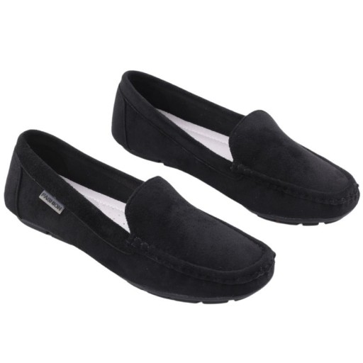 CZARNE MOKASYNY DAMSKIE WSUWANE PÓŁBUTY WKŁADKA EKOSKÓRA ELEGANCKIE