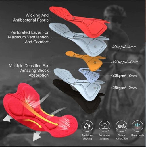 - ULEPSZONA WKŁADKA 4D: Ulepszona 6-warstwowa podkładka wykonana jest z pianki o dużej udarności i oddychającej gąbki o dużej gęstości, zapewnia komfort i skuteczną ochronę, aby uniknąć obrażeń podczas długodystansowej jazdy na rowerze. W porównaniu z poduszką silikonową, podkładka z gąbki jest bardziej oddychająca, elastyczna i bezpieczna dla wrażliwej skóry.