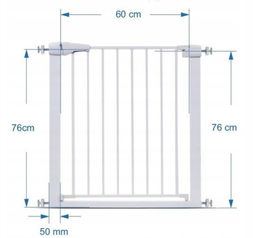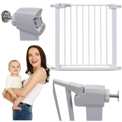 - Barierka zabezpieczająca na schody posiada regulowaną szerokość pozwala na zamontowanie jej w drzwiach i przejściach od 75 do 82 cm.