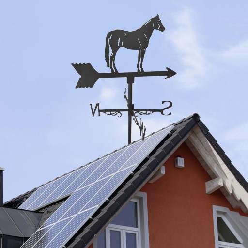 nasze czarownice stoją na tym aluminiowym weathervane. Ze stylowymi liniami prostymi i satynowe czarne wykończenie, ta wiatrowskaz jest świetną ozdobą twojego ogrodu.Ten rodzaj wiatrowskaz jest nie tylko piękny, ale także przydatny do poznania kierunku wiatru.