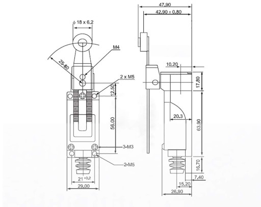 Regulowany wyłącznik krańcowy z obrotową dźwignią rolkową AC 250 V 5 A, jest szeroko stosowany w różnego rodzaju obrabiarkach i maszynach dźwigowych, do kontrolowania odległości biegu i ochrony limitu terminala.