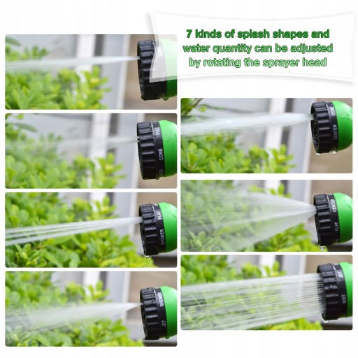 ☘️Wielofunkcyjna dysza natryskowa: 7 rodzajów kształtów rozprysków i ilość wody można regulować, obracając głowicę opryskiwacza, dostosowując ją do swoich potrzeb i zastosowania.