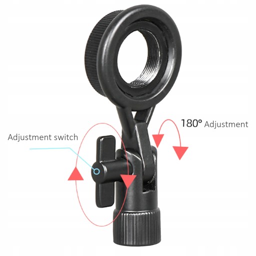 Wykorzystuje otwory na śruby 5/8 i jest wyposażony w śruby od 5/8 do 3/8, kompatybilne z większością uchwytów mikrofonowych.